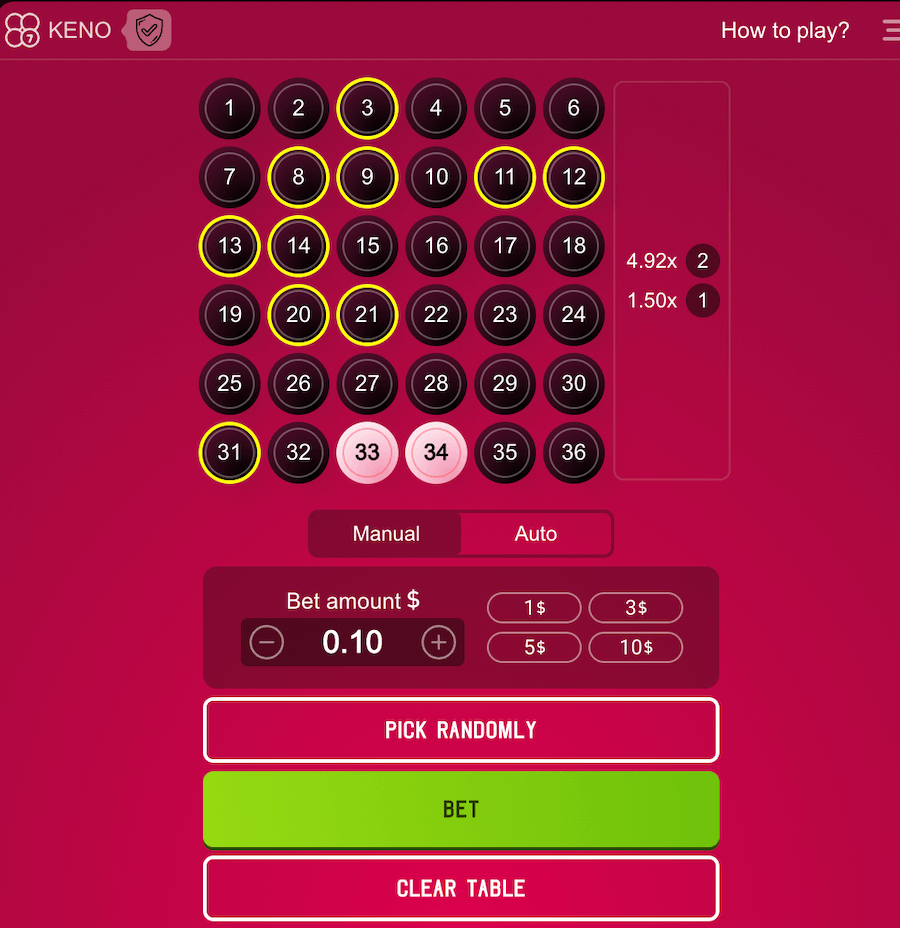 Depois de ficar satisfeito com as apostas selecionadas, você pode proceder e escolher os números desejados. Você pode apostar em 1 a 10 números, mas com tantas versões de Keno disponíveis, esse número pode variar muito de uma variação para outra.