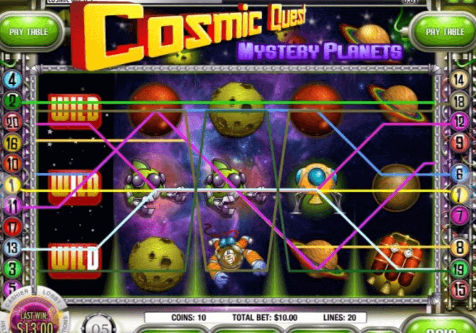 Entre os slots mais populares nos melhores cassinos rivais que você encontrará Quest Cósmica. Outra série incrível desenvolvida por esta empresa. Desta vez, o enredo o levará entre planetas distantes e formas de vida alienígenas.